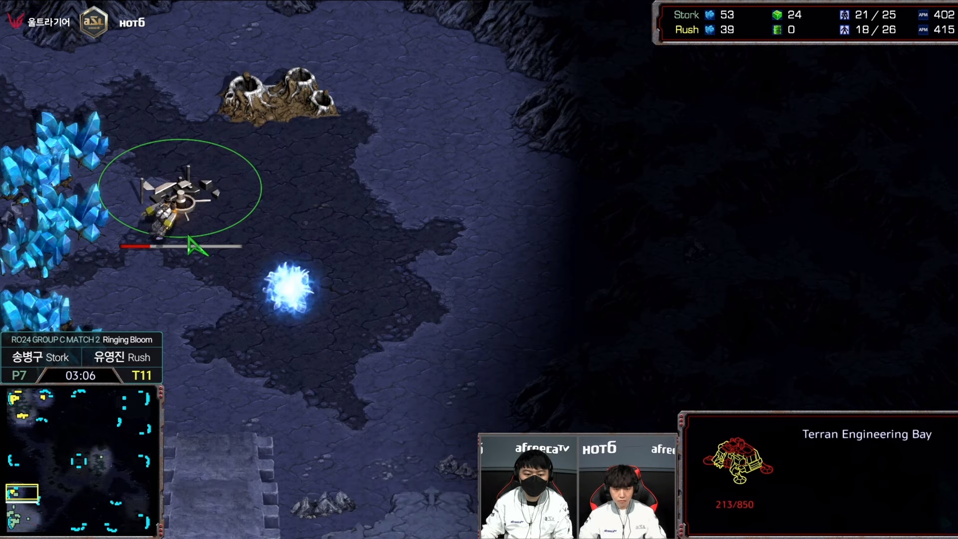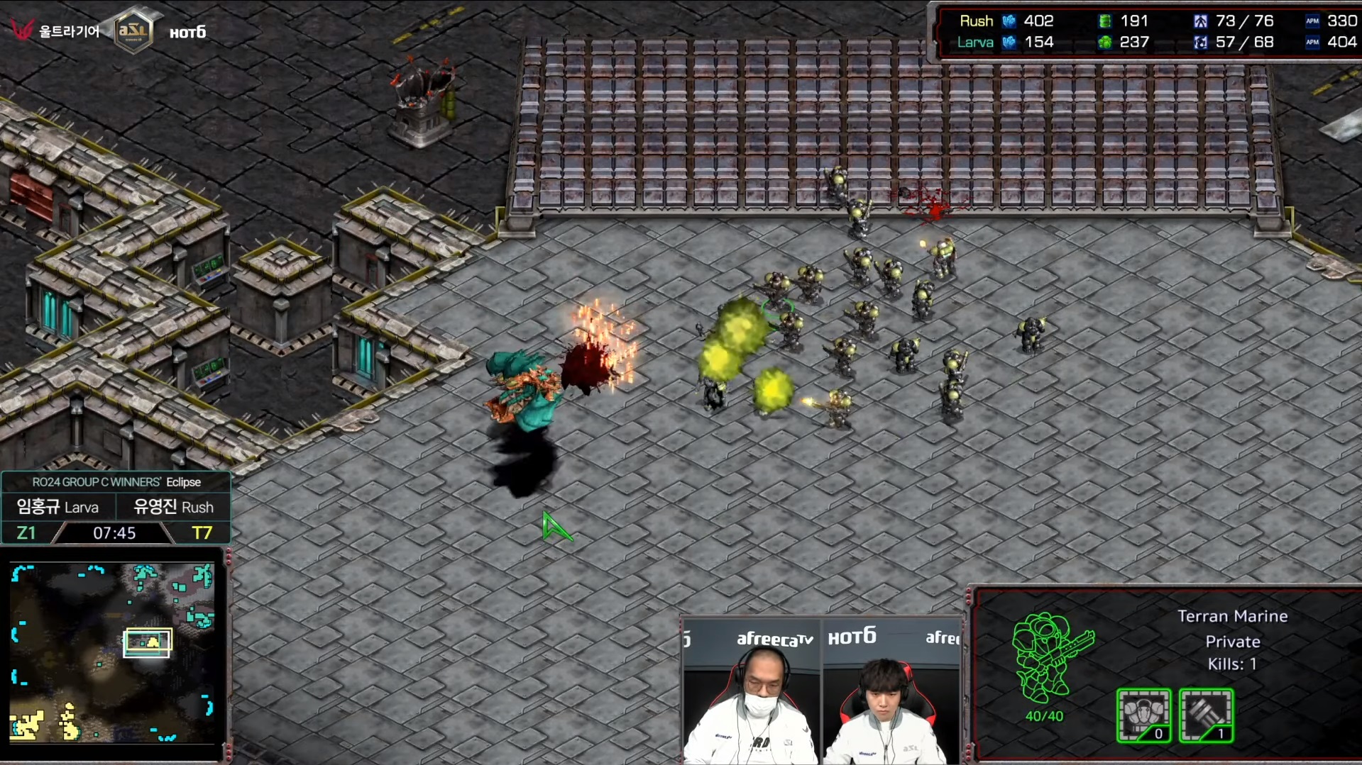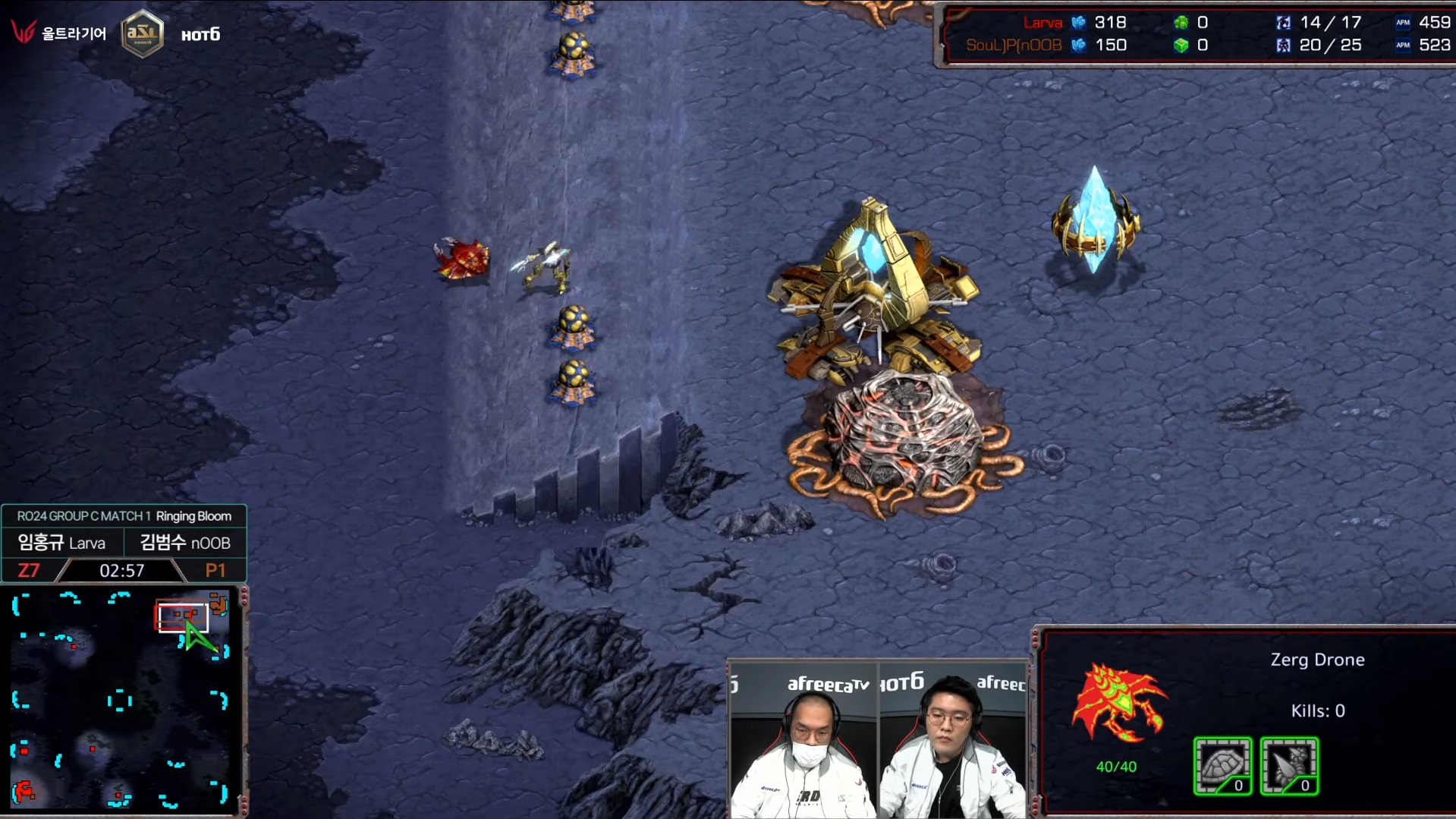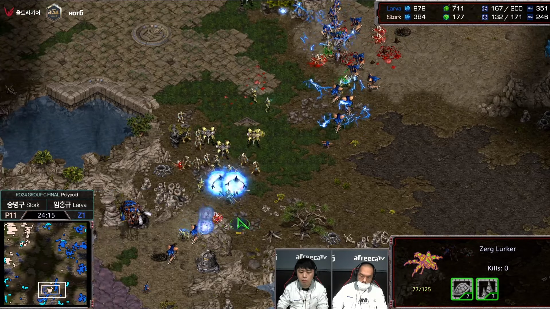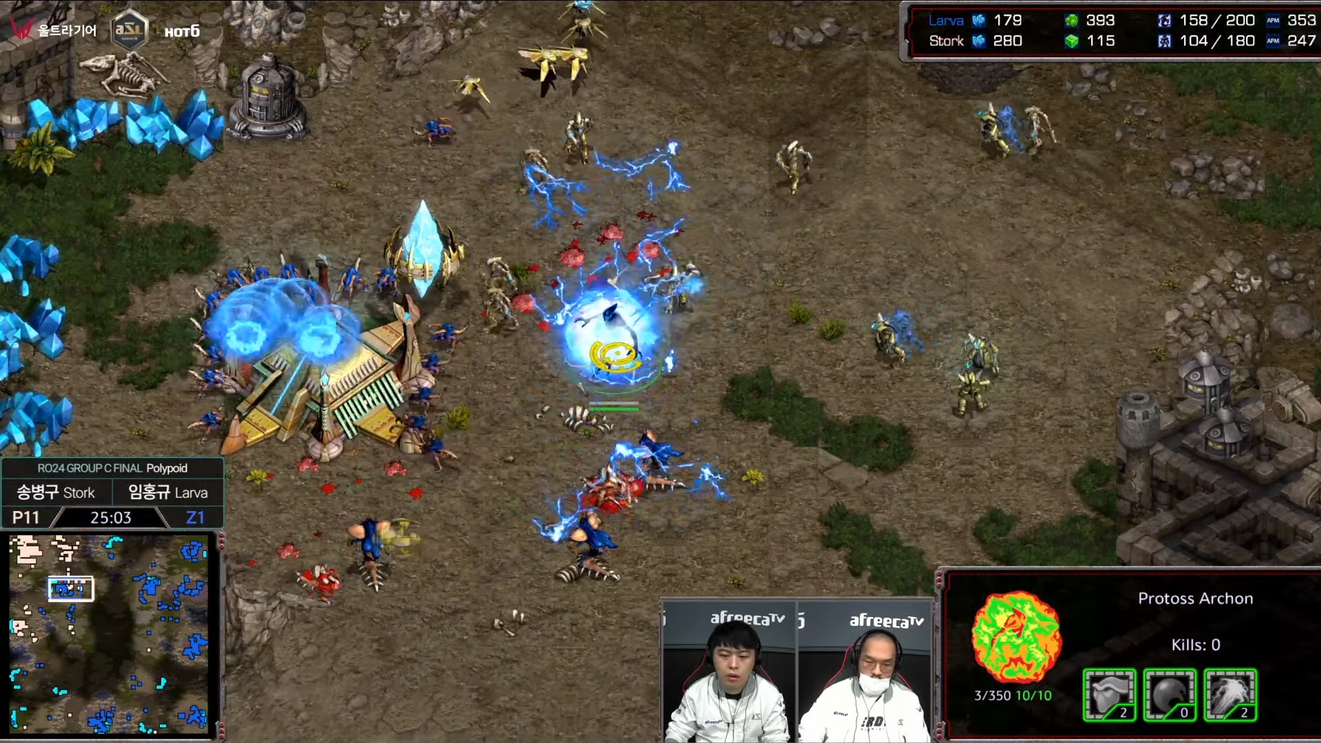 Потеряв армию, Stork полностью развязал руки Лярве, тот еще сильнее отхамил карту и уже обгонял тосса по лимиту. Однако, Аист продолжал бороться.