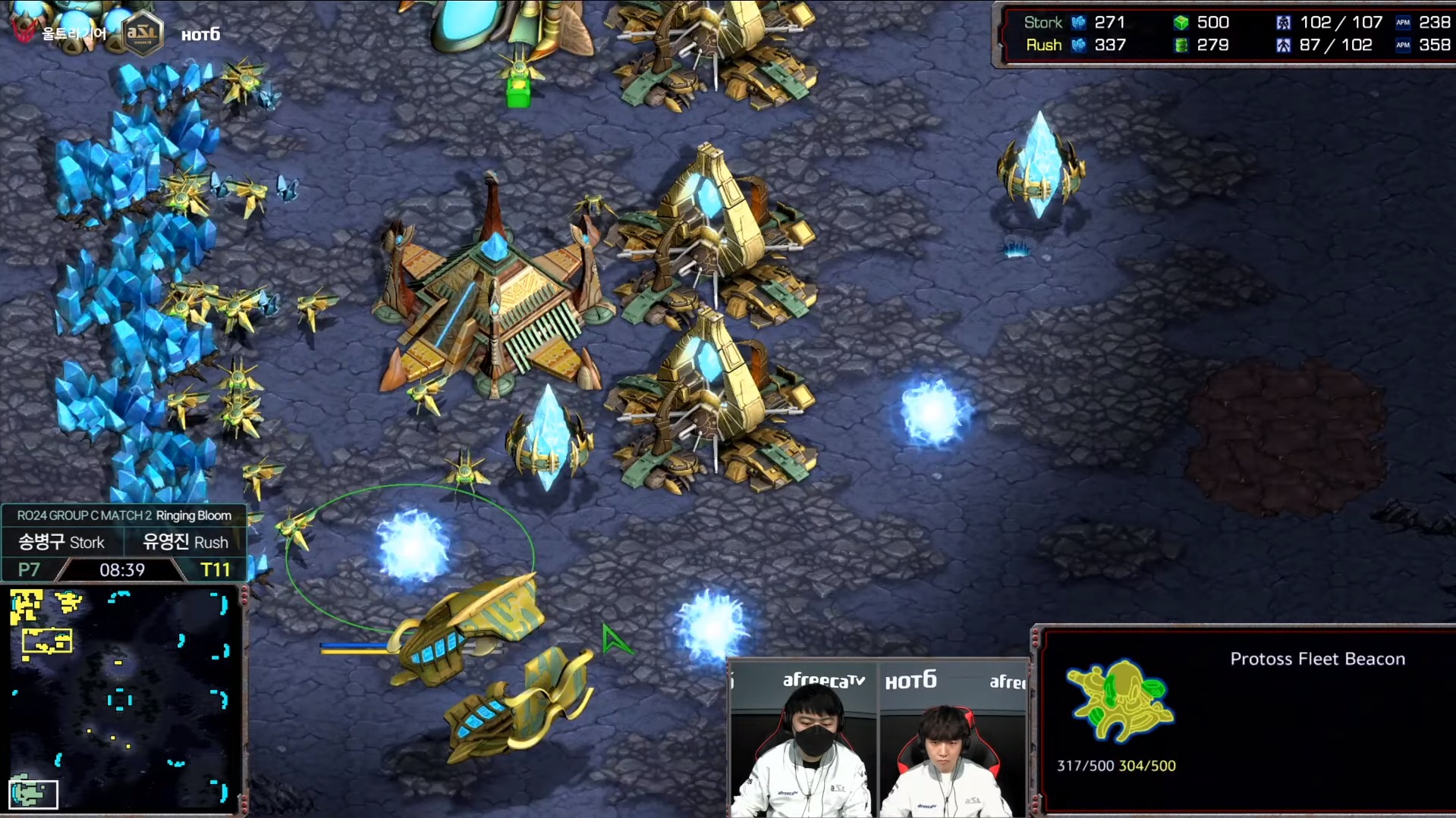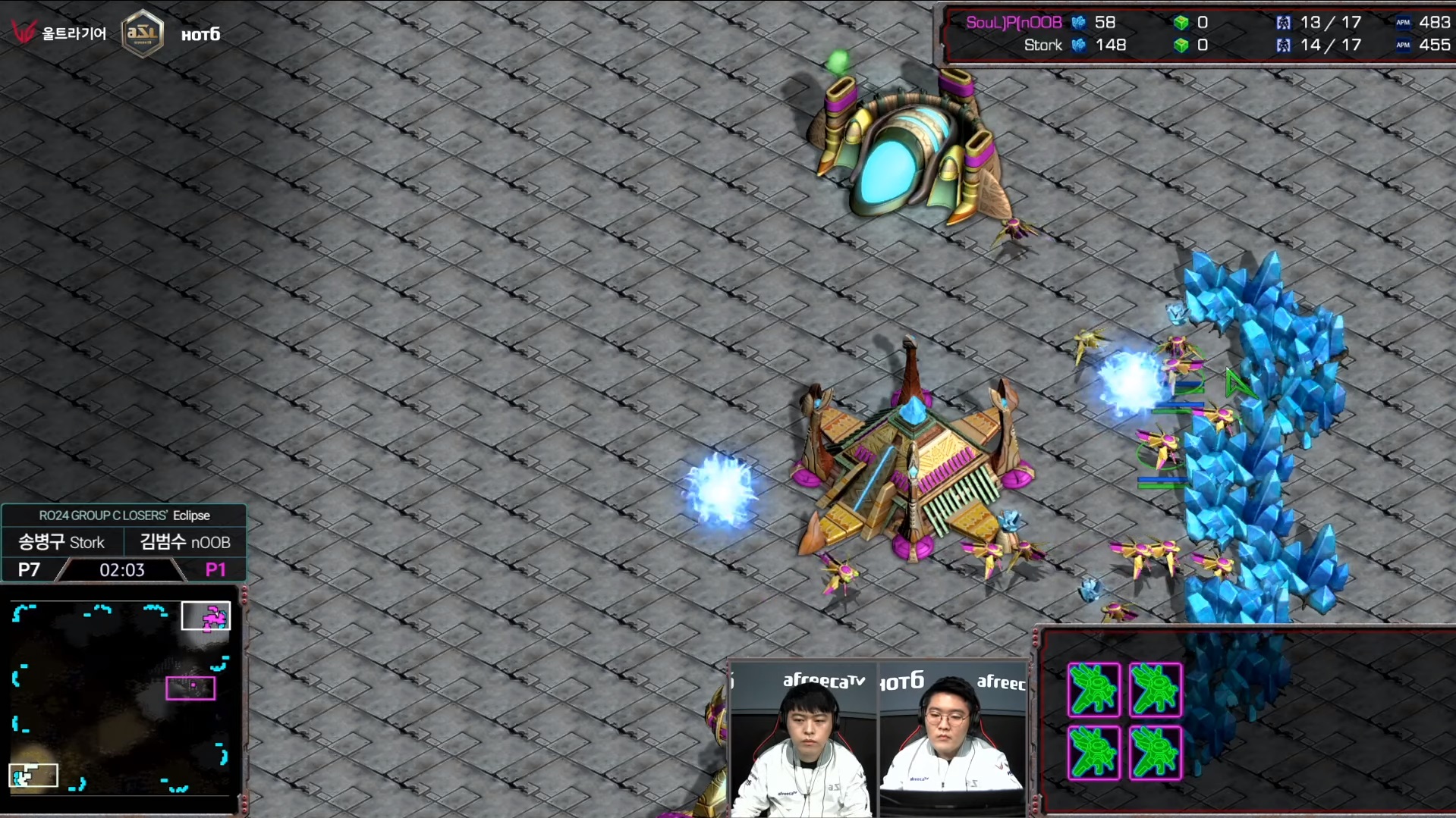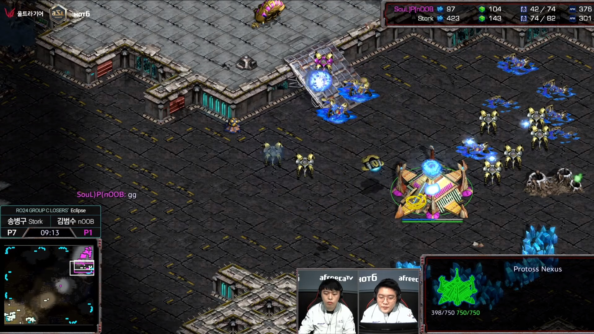 Вот только сам Stork при этом потерял два нексуса. Дождавшись поступления ног для зилотов, протосс выбивает террановскую блокаду.