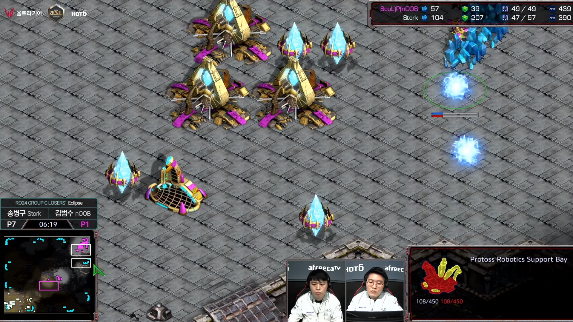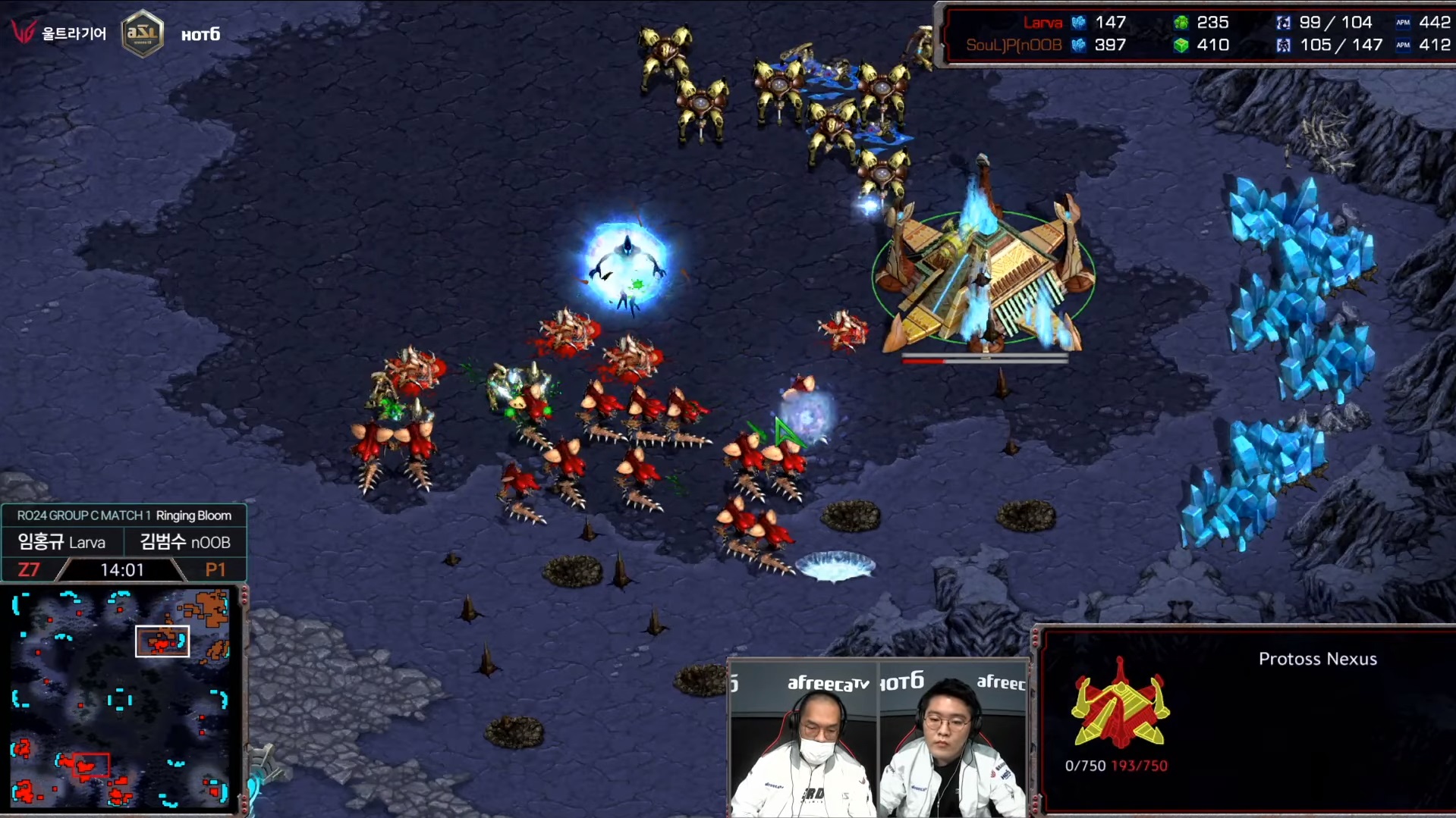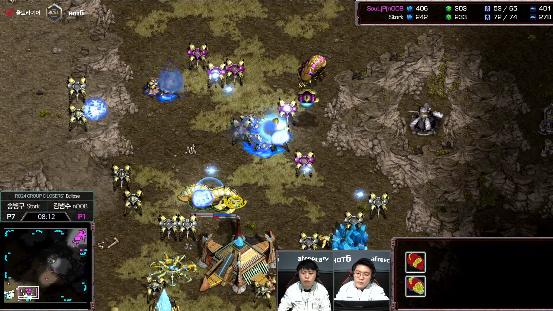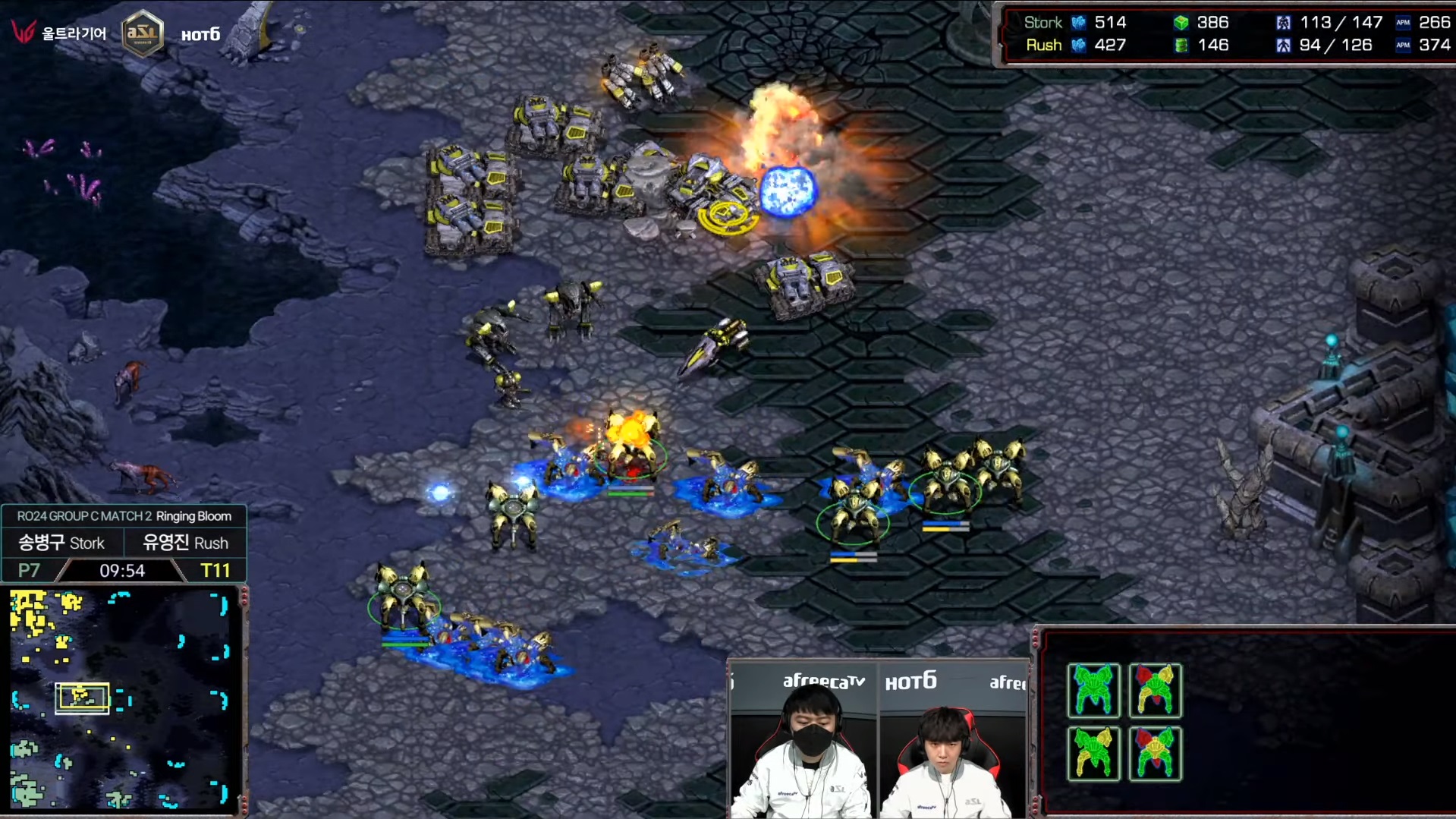 Вот только сам Stork при этом потерял два нексуса. Дождавшись поступления ног для зилотов, протосс выбивает террановскую блокаду.