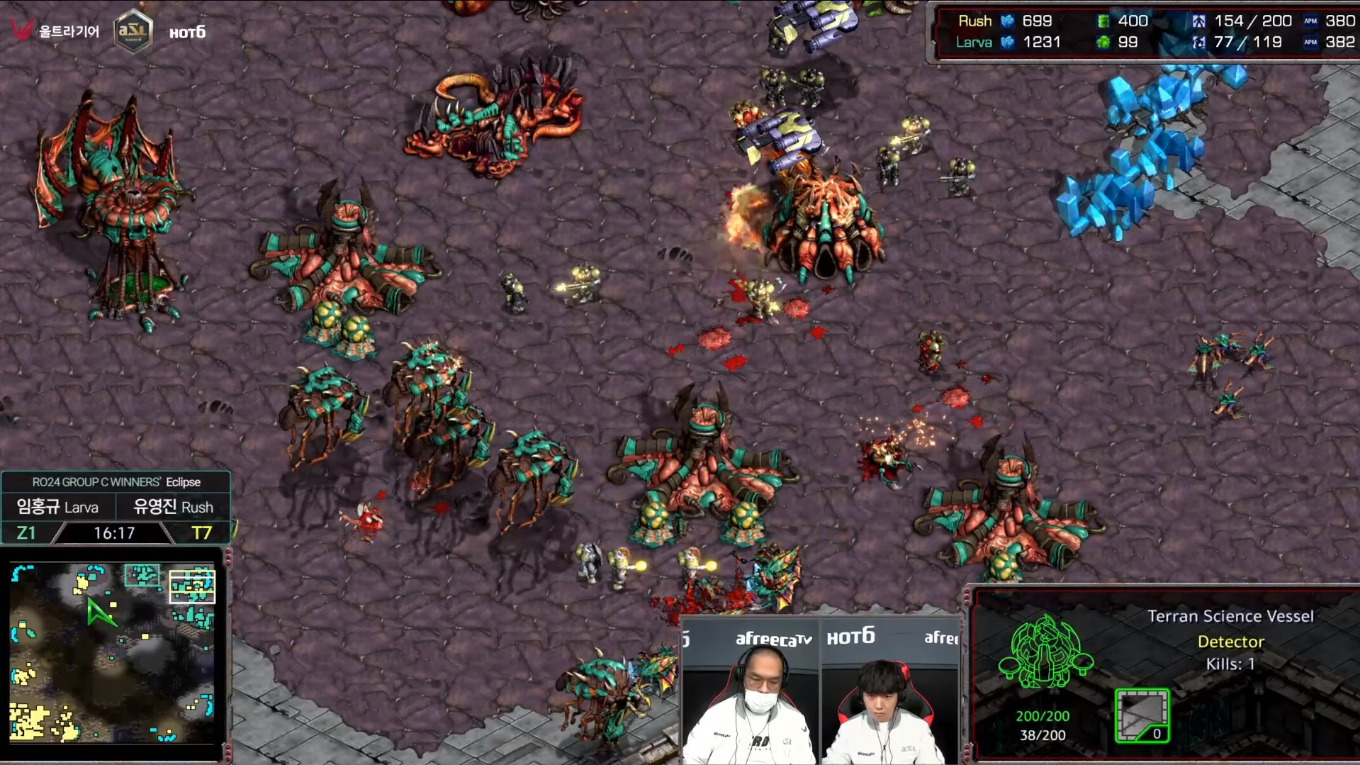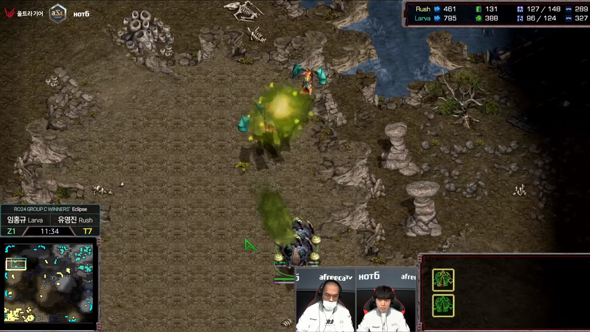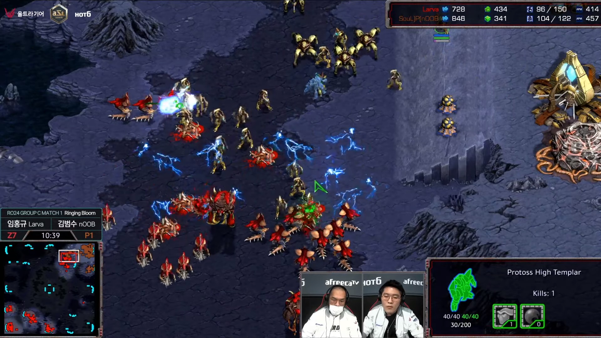 Ларва подстраивает муталисков и доставляет много головной боли, выщелкивая темпларов и заставляя штормить собственных рабочих и войска